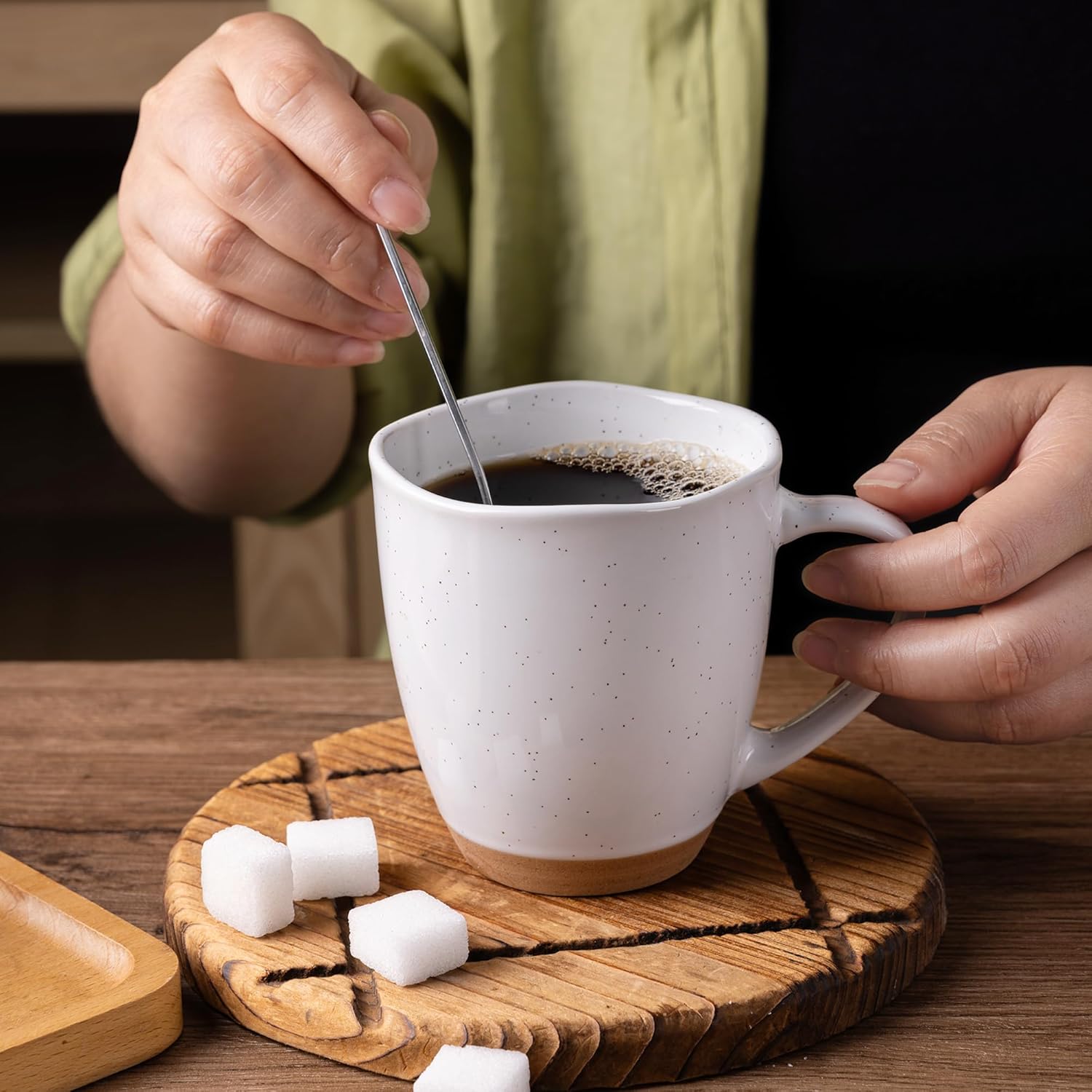 - UNIQUE DESIGN: These mugs feature a unique wavy rim and a clear, speckled glaze finish. Each piece with handcrafted decorative is beautifully individual, adding a touch of sophistication to your table setting, making them a stunning addition to any kitchen or dining room.