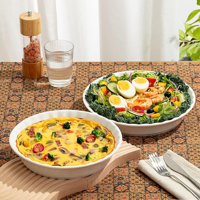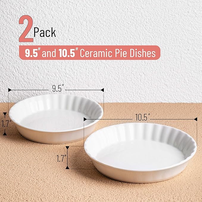 - BTaT ceramic pie dish set includes 2 dishes, measuring 10.5 inches and 9.5 inches, perfect for baking delicious pies, quiches, and casseroles.
