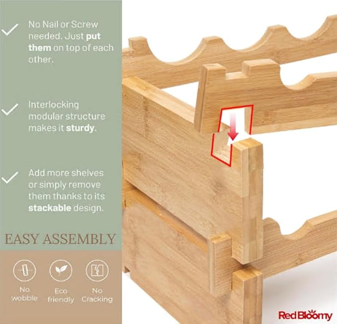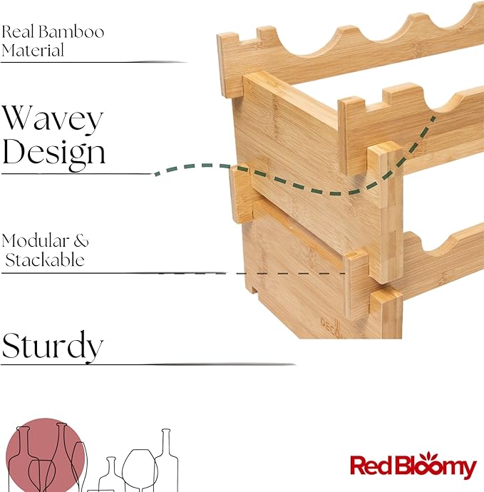 Stackable Bamboo Wine Rack for 72 Bottle, 8-Tier and Sturdy, Free Standing, Modular Wine Storage, Wine Bottle Storage for Cellar, Kitchen and Dining Room (18 Bottle)