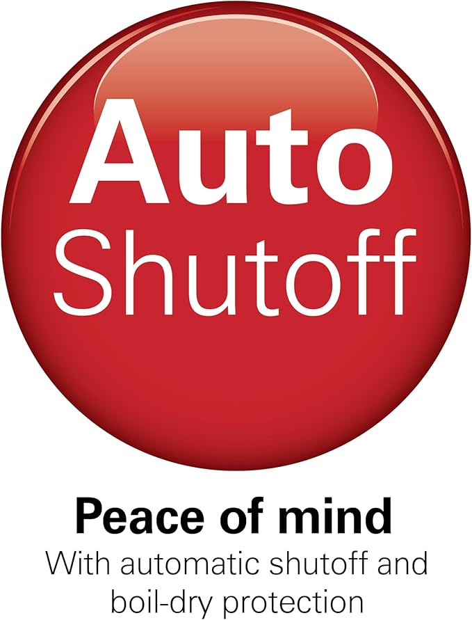 - Automatic shutoff for peace of mind. The automatic shutoff function turns the electric water kettle off when water comes to a boil and the boil-dry protection function keeps the electric teapot from scorching if the water level gets too low.