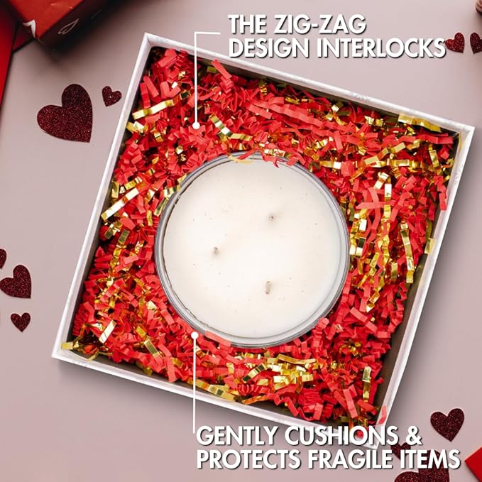 - VERSATILE GIFT WRAPPING & PACKAGING: Our 2 LB Red & Gold crinkle paper filler is perfect for creating eye-catching displays in gift bags, gift boxes, and baskets. Fill those extra spaces with premium Red & Gold filler paper, ensuring your gifts stand out at any event.