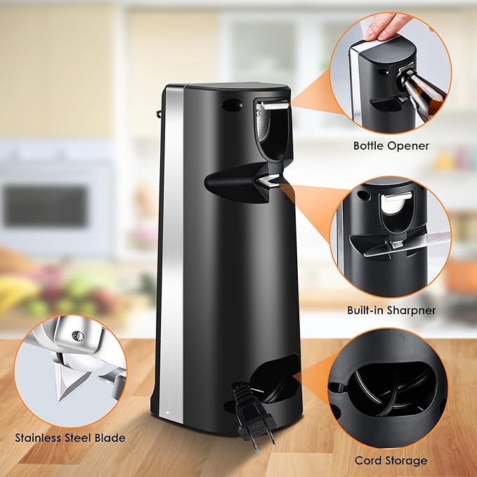 Davivy Electric Can Opener,Stainless Steel Tall Automatic Can Opener, Knife Sharpener and Bottle Opener (Black)