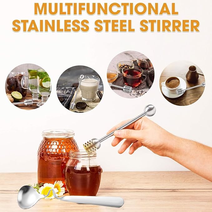 - Honey spoons Material: honey dipper set is made of high quality stainless steel, stainless steel honey spoon with high gloss polish, suitable for daily use