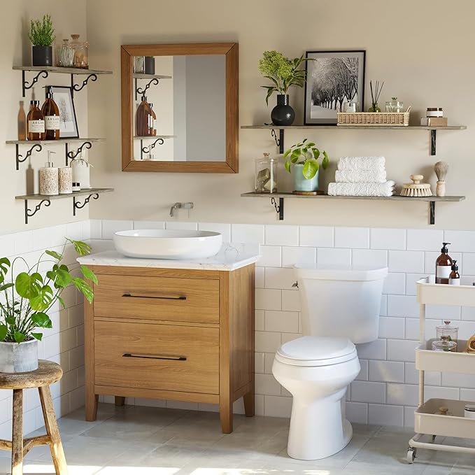 - 【Add Finishing Touch to Space】Mid-century design adds a retro-chic vibe to your home. Rusticity wood grain and exquisite S-shaped iron brackets flaunt visual interest and romance. They are full of character and enhance the texture of the space. A classy way to display your beloved decorations