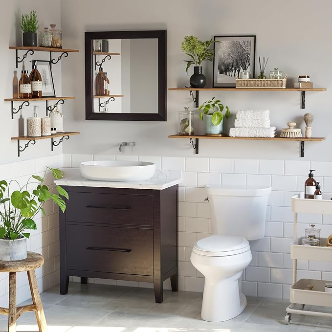 - 【Add Finishing Touch to Space】Mid-century design adds a retro-chic vibe to your home. Rusticity wood grain and exquisite S-shaped iron brackets flaunt visual interest and romance. They are full of character and enhance the texture of the space. A classy way to display your beloved decorations