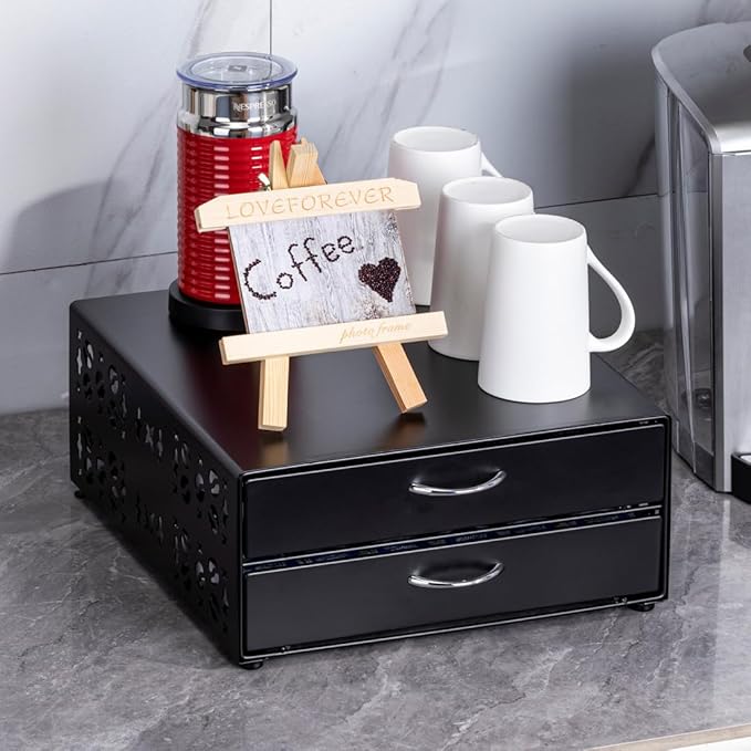 - 【Easy to Organize】Easy to pull out drawer and put in pods offer the best user experience. The unique hollow groove design perfectly matches the size of the K-cup.You don't need to line it up one by one, just put it in as you easy.Greatly save your coffee preparation time.