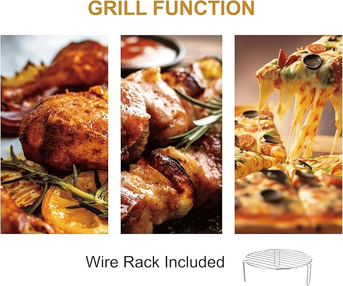 - Built-In 1,000W Grill Function: Go beyond reheating—achieve golden-brown finishes, crispy toppings, and grilled textures with Emerson’s integrated grill mode, ideal for pizza, toast, casseroles, and more.