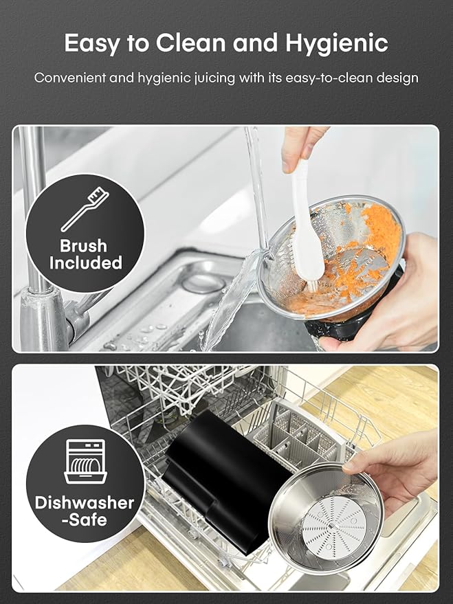 - Want cleanup after juicing to be a breeze - With a brush to clean juicing filter, dishwasher-safe accessories, cleanup will never feel like a chore