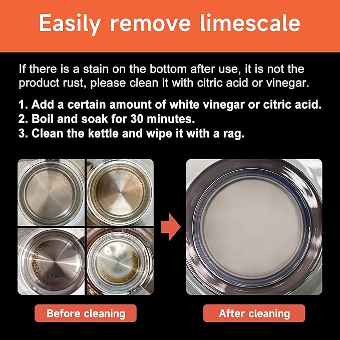 - 【User-friendly Design】Easy-pour spout comes with a mesh filter of stainless steel lid, preventing scale deposits passing into your drink. Cover easily opens lid for fast filling. Cool-to-touch handle provide extra safety. 360 degree cordless base for added convenient.