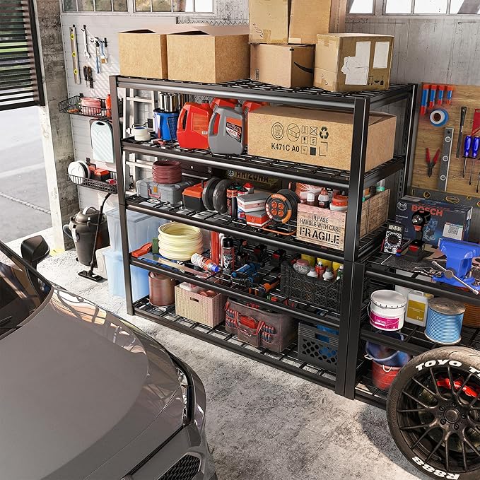 - 【Extremely Durable & Storage Shelves Heavy duty】High-intensity premium cold-rolled steel builds the heavy duty shelving, finished with an advanced powder coating process. This makes them not only sturdy and durable, but also rust-resistant. In addition, we offer a complimentary set of four floor mats (4 feet x 2 feet each). These mats not only increase stability but also protect your floor