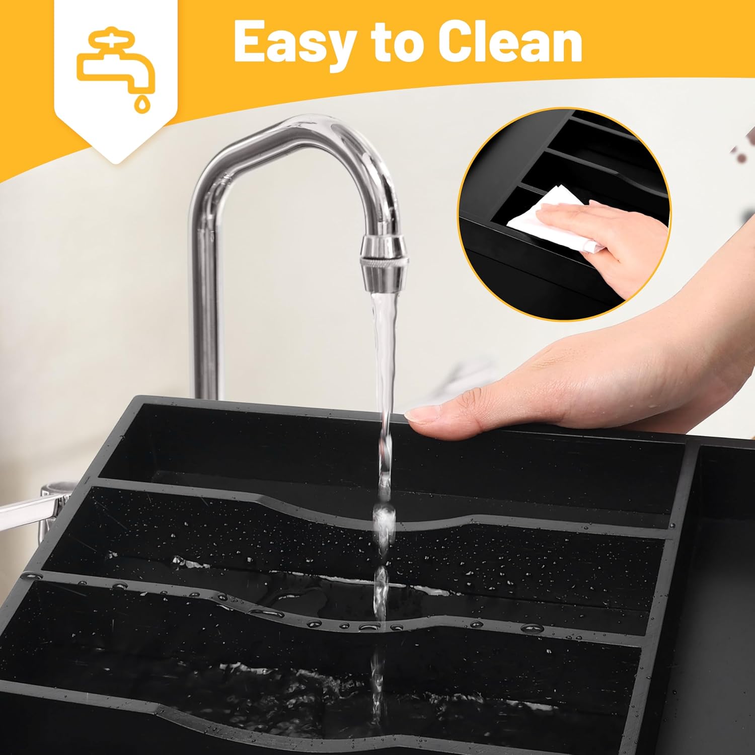 - â ăMultifunctional Design For Your NeedsăOur multi-purpose cutlery organizer is not only suitable for storing silverware, but also with large capacity & deep grooved edges, the storage tray can also be used to organize your office, bathroom sink drawer, dresser, & craft corner, being perfect to sort pencils, pens, grooming supplies, makeup brushes and lipsticks, or art supplies like paintbrushes and charcoal.