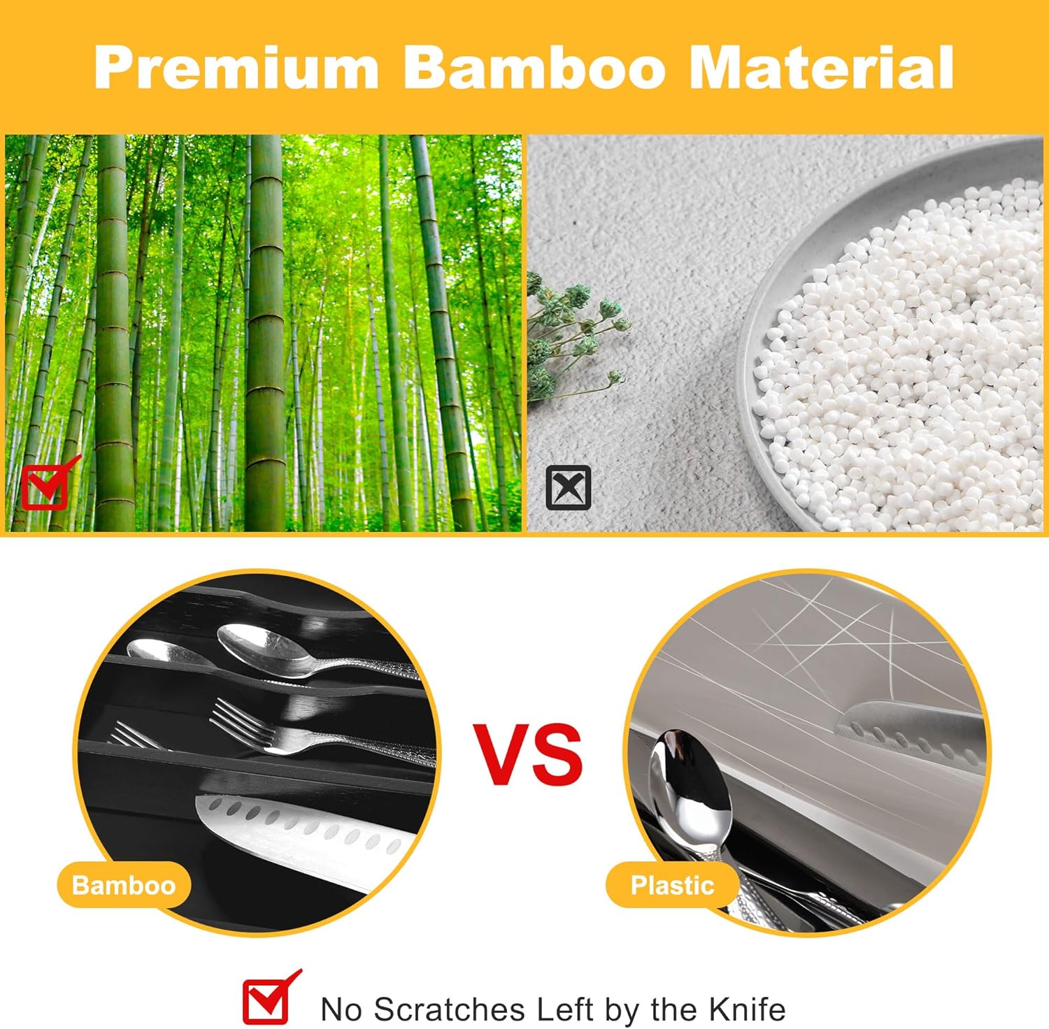 - â ăSturdy and Well-madeăOur silverware tray for drawer is made of minimally refined natural bamboo, a renewable, sustainable source, making them a green choice, with the age of over 4 years, which makes the silverware holder durable enough for long time use. Unlike the plastic and metal drawer organizer, our flatware & utensil is water & odor resistant, the silverware organizing tray is perfect for years of use, especially in kitchens where things can get messy quickly.