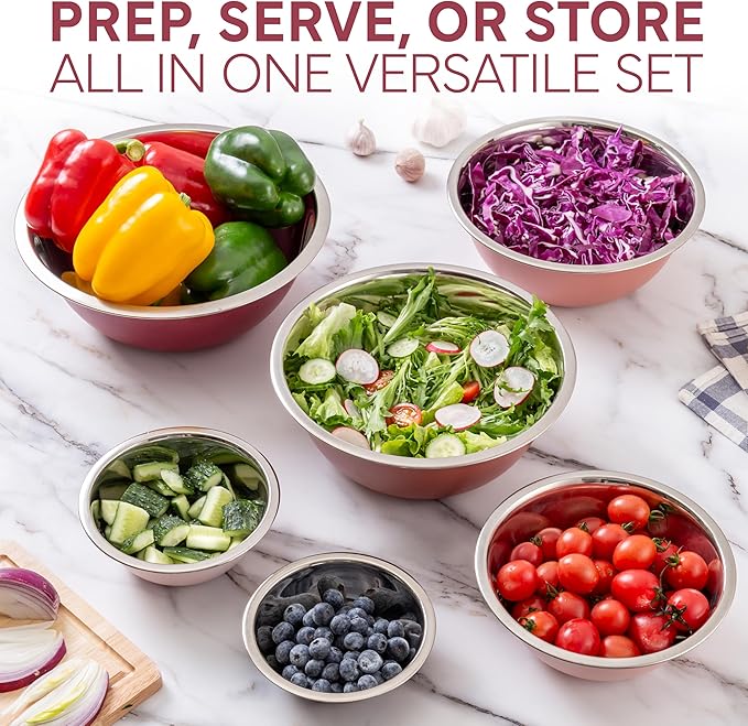 COOK WITH COLOR Stainless Steel Mixing Bowls Set - Nesting Bowls, 6 Pieces, Rose
