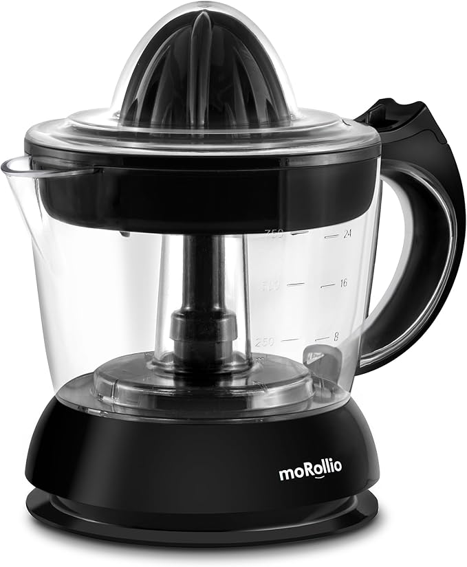 - COMPACT AND CONVENIENT: This electric orange juicer is compact, easy, and convenient. Extract fresh nutritious juice from oranges, grapefruits, lemons and limes. Holds 24oz.