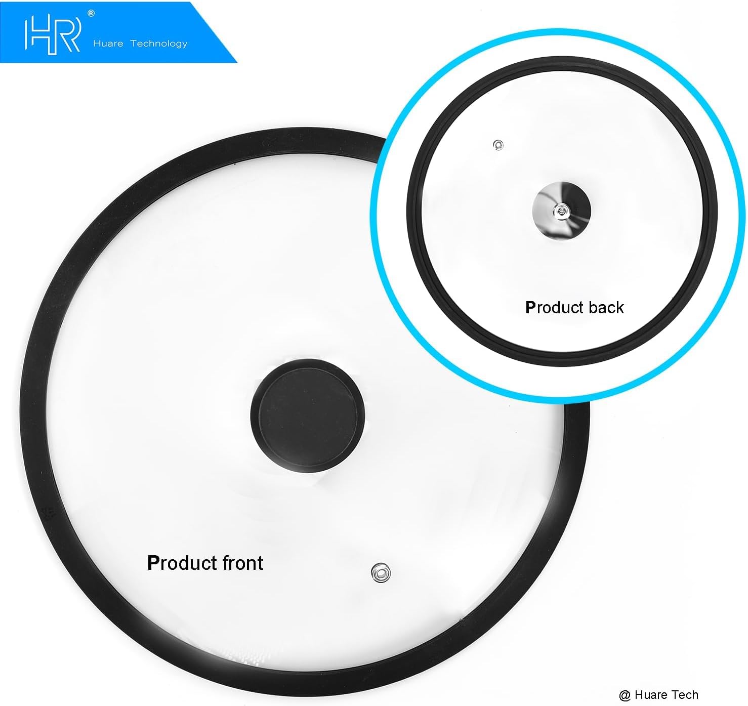 Silicon Glass Lid for Pot,Pan,Skillet Fits 8"(20CM) Cookware Silicon lid Dishwasher Safe, Replacement Lid Vented Tempered Glass with Heat Resistant Silicone Rim By HR Huare Technology, Black,1 Pack…