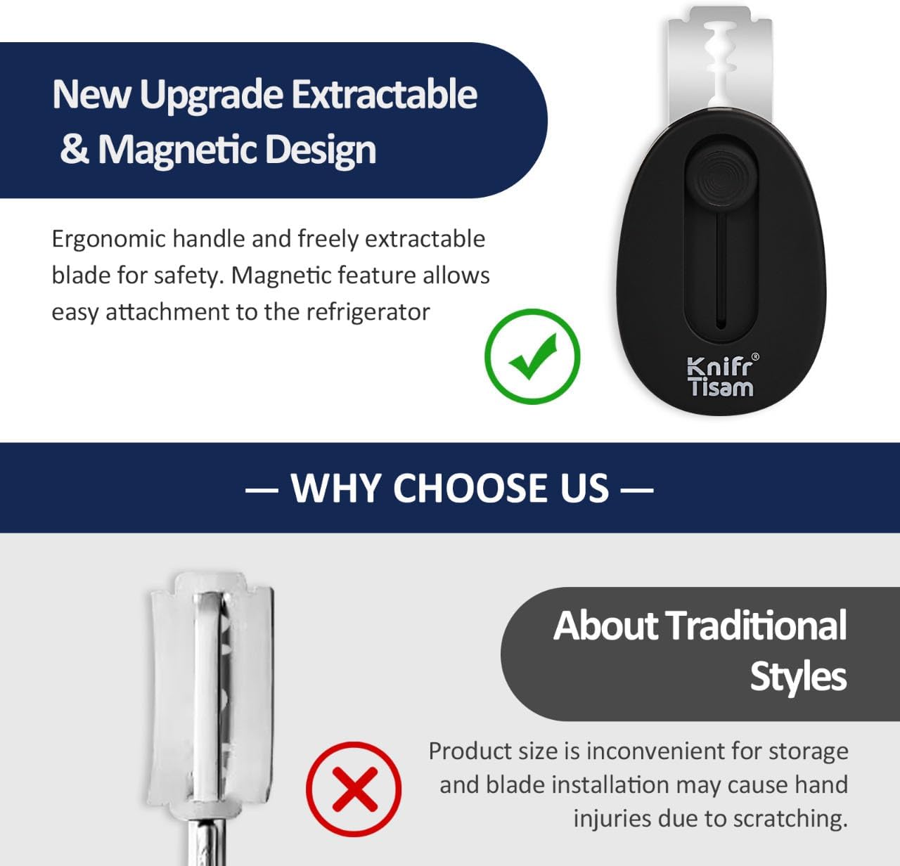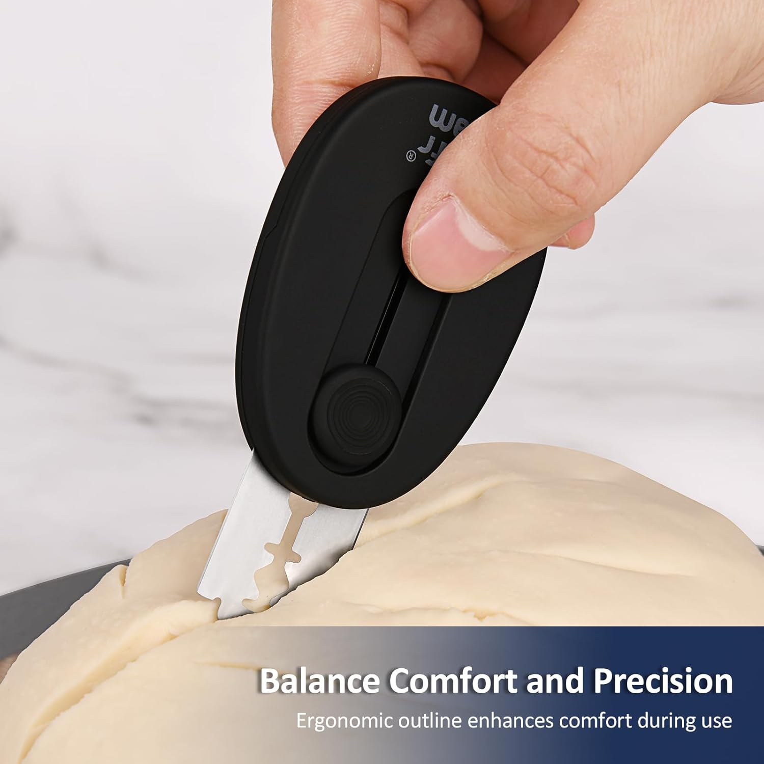 - Safety Design - Extractable & magnetic bread scoring tool for safe & easy dough scoring. Blades are held firmly in place by magnets and slide by a button, so they don't fall out easily.