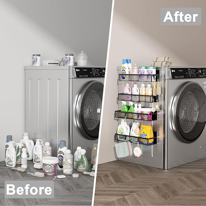 - Multi-Use Magnetic Refrigerator Organizer: Can be used on all magnetic surfaces of your home, kitchen or laundry room, such as the side wall of your refrigerator to hold spices, oils, utensils, towels or other essentials. Our moveable refrigerator shelf can also be used on the side of an oven, microwave, coffee machine, washing machine, classroom, whiteboard or tools wall for storage.