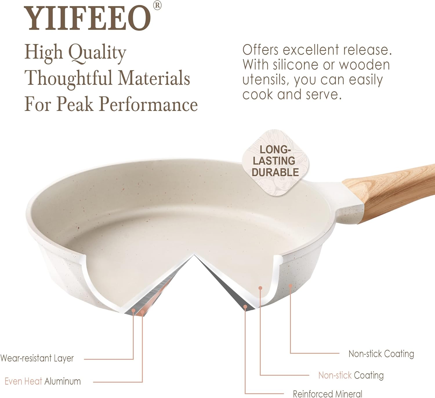 - 【Ultimate Nonstick & Super Easy To Clean】A top level, harder nonstick granite, it provides at least 8x extra nonstick durability, keeping food sliding smoothly. Being an enjoy to both cooking and cleaning, just a little wipe. YIIFEEO pan set keeps stubborn stains out of your life and keeps your passion for cooking.