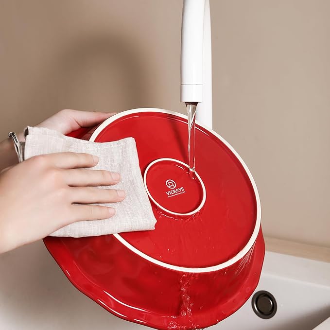 - STURDY AND SCRATCH RESISANT - The ceramic pie tins are made of high quality and safe glaze. Extremely hard glaze does not scratch,non stick, and durable for everyday use, ideal in the kitchen for making fruit or meat pies.