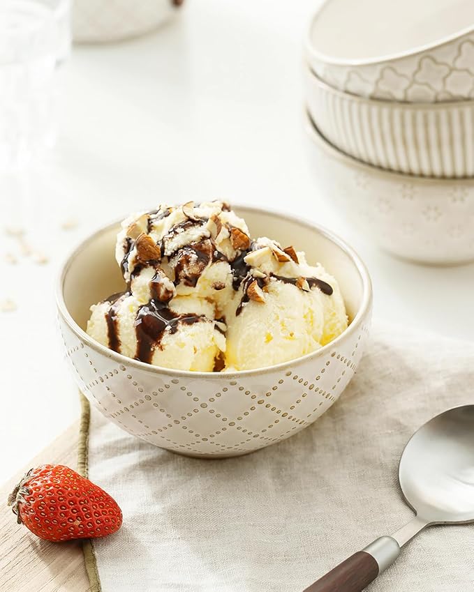 - 【Generous Size】With a 4.5-inch width & 10-ounce maximum capacity, these ceramic bowls offer just space for your favorite desserts, soups, cereal, ice cream, and more. Their ideal size ensures that you can savor every spoonful of your hearty creations