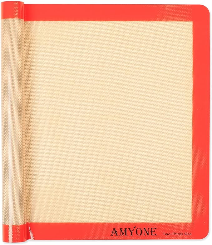 - đ§ăTOP-QUALITY CONSTRUCTIONăCrafted from premium food-grade silicone and internally reinforced with fiberglass, this 2/3 silicone baking mat is built to last. It meets European standard, guaranteeing reliable performance for all your baking needs. With a thickness of 0.75mm and with glossy dense finish as well as wider coated edges, these baking mats for two thirds sheets, can withstand temperatures ranging from -40°F to 480°F making it suitable for a wide range of baking needs.