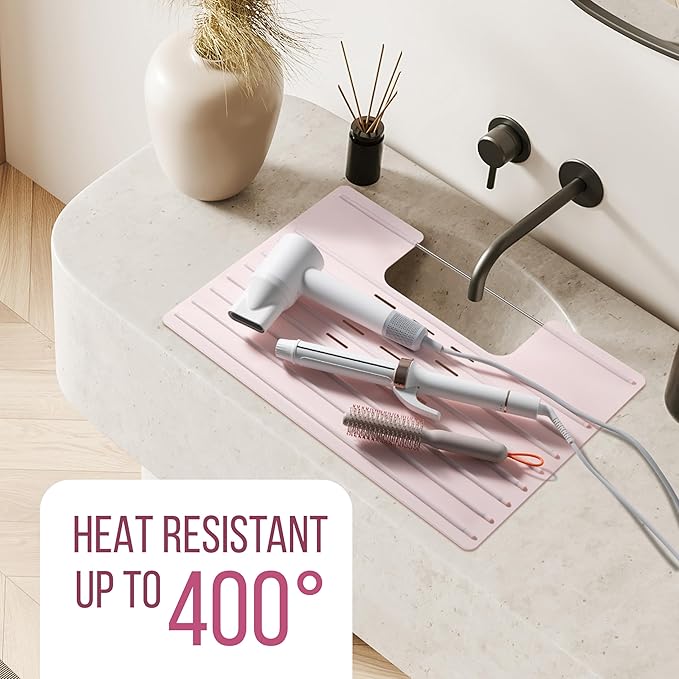 - Heat Resistance: Style your hair confidently with this bathroom sink mat, able to withstand temperatures up to 400 degrees. This silicone sink mat protects your bathroom sink countertop, ready for any styling needs
