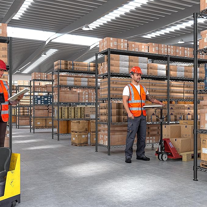 - 【1600LBS Durable Metal Shelving】Crafted from heavy-duty metal wire panels and 19.1 mm diameter metal rods, each panel is reinforced at the bottom for extra strength. This heavy duty shelving unit can effortlessly hold up to 320LBS per shelf, with a total capacity of 1600LBS. It can also function as a garage shelving heavy duty, delivering the quality you expect.
