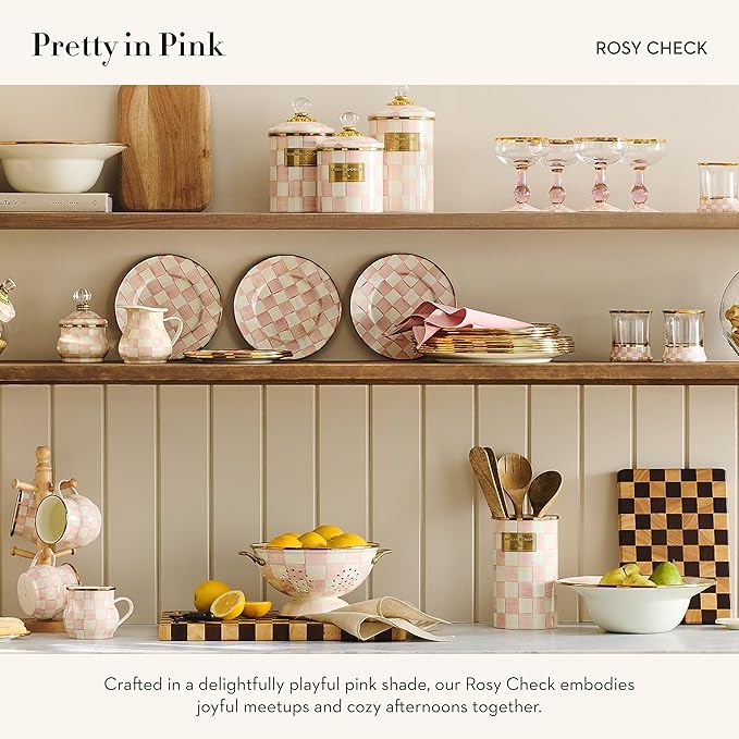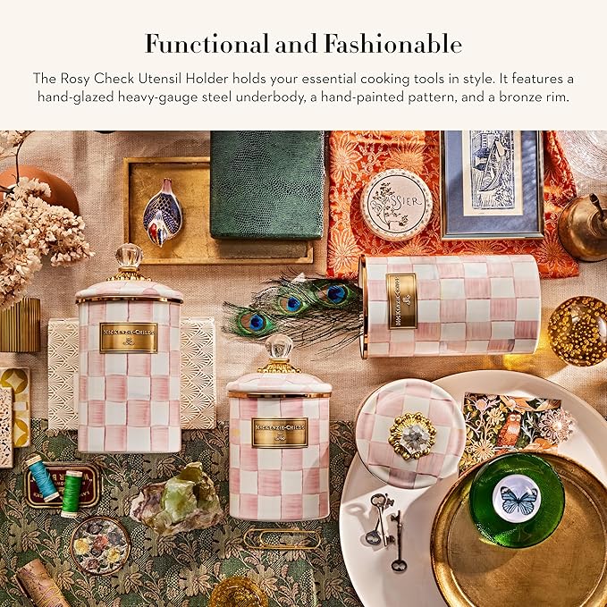 - KITCHEN DECOR ESSENTIAL: Our Rosy Check kitchen utensil holder is an ideal kitchen storage container with a fresh, clean pattern. It features a palette of color-dragged pink-and-white checks in a range of rosy hues to complement a whimsical cooking space.