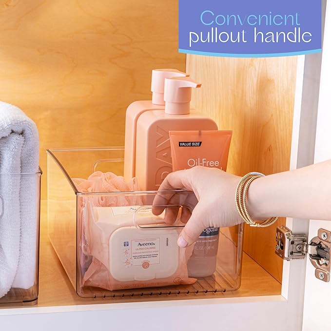 - Easy Visibility and Convenient Handles: The clear plastic design allows you to quickly see and access your stored items without any hassle. Built in grip handles provide a secure and comfortable hold, making it easy to pull out the bin and grab what you need. The open top design adds conveniece, perfect for busy families, organizers and anyone looking to organize their space.
