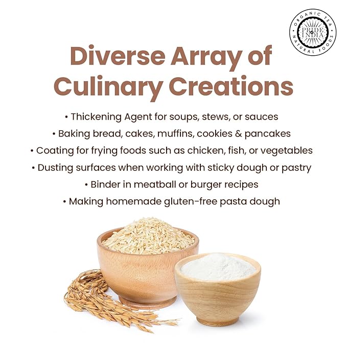 - Wholesome Flavor Fusion: Elevate your culinary creations with the earthy richness of Brown Rice Flour, a versatile ingredient that adds depth and character to every dish. Delight in the subtle nuttiness and delicate sweetness that this flour brings, enhancing both savory and sweet recipes with its distinct flavor profile.