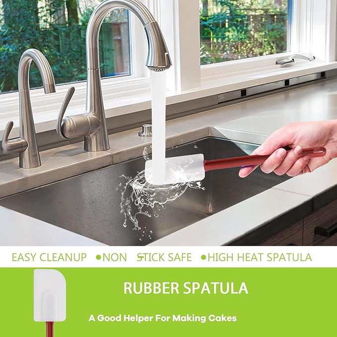 - STURDY & FLEXIBLE: This high heat spatula set, is sturdy to stir sticky dough, and soft on the edges to cleanly scrape batter or button from your bowl; Edges of these spatulas are thinner and flexible, working fine at scraping, perfect to reach the bottom of mixer bowls (which have high sides) without getting your hands sticky. And meantime they won't scratch the metal or other cookware.