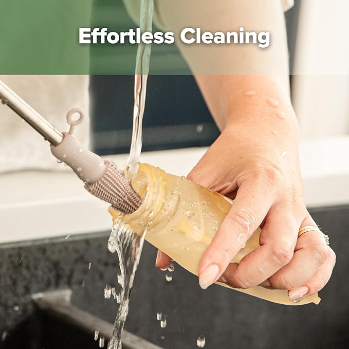 - ππ’π‘π©ππ‘πππ‘π§ π§π’ π¨π¦π ππ‘π πππ¦π¬ π§π’ πππππ‘: With its wide neck and flat base, the Haakaa baby food pouches reusable are easy to fill β simply pour in! The smooth, one-piece construction means cleaning is also a breeze, with no joints or cracks for food to get stuck in.