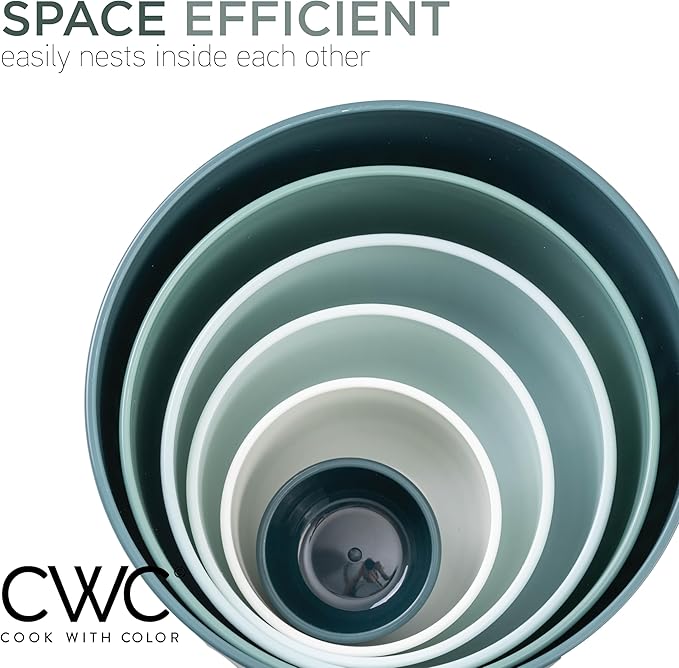 - Cook with Color 12 piece plastic mixing bowl set - non slip bowls with lids; easy to clean, sturdy mixing bowls.