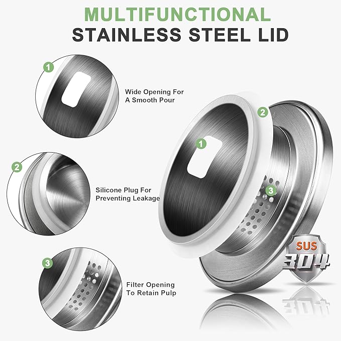 - PERFECT BALANCE OF DESIGN & PRACTICALITY: Modern chic glass pitcher with lid is the perfect jug for serving water for any occasion and enhances every table. This glass pitcher comes with a dual opening 18/8 stainless steel lid, which can be adjusted as you like, making it easy to retain pulp and ice cubes or pour beverages quickly, which greatly improves the drinking experience