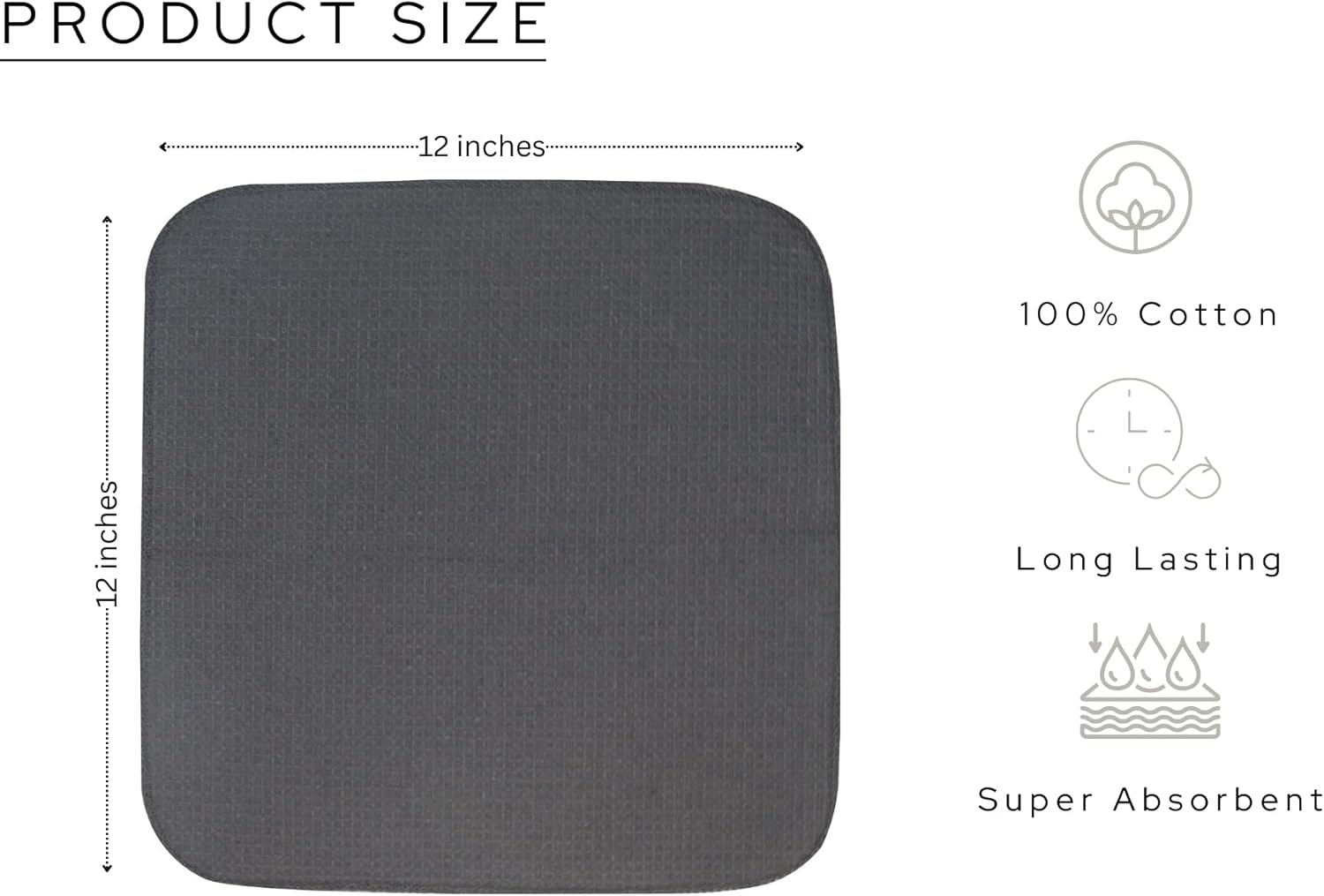 - Pack of 6 Waffle Weave Dish Cloth measuring 12 by 12 Inches.