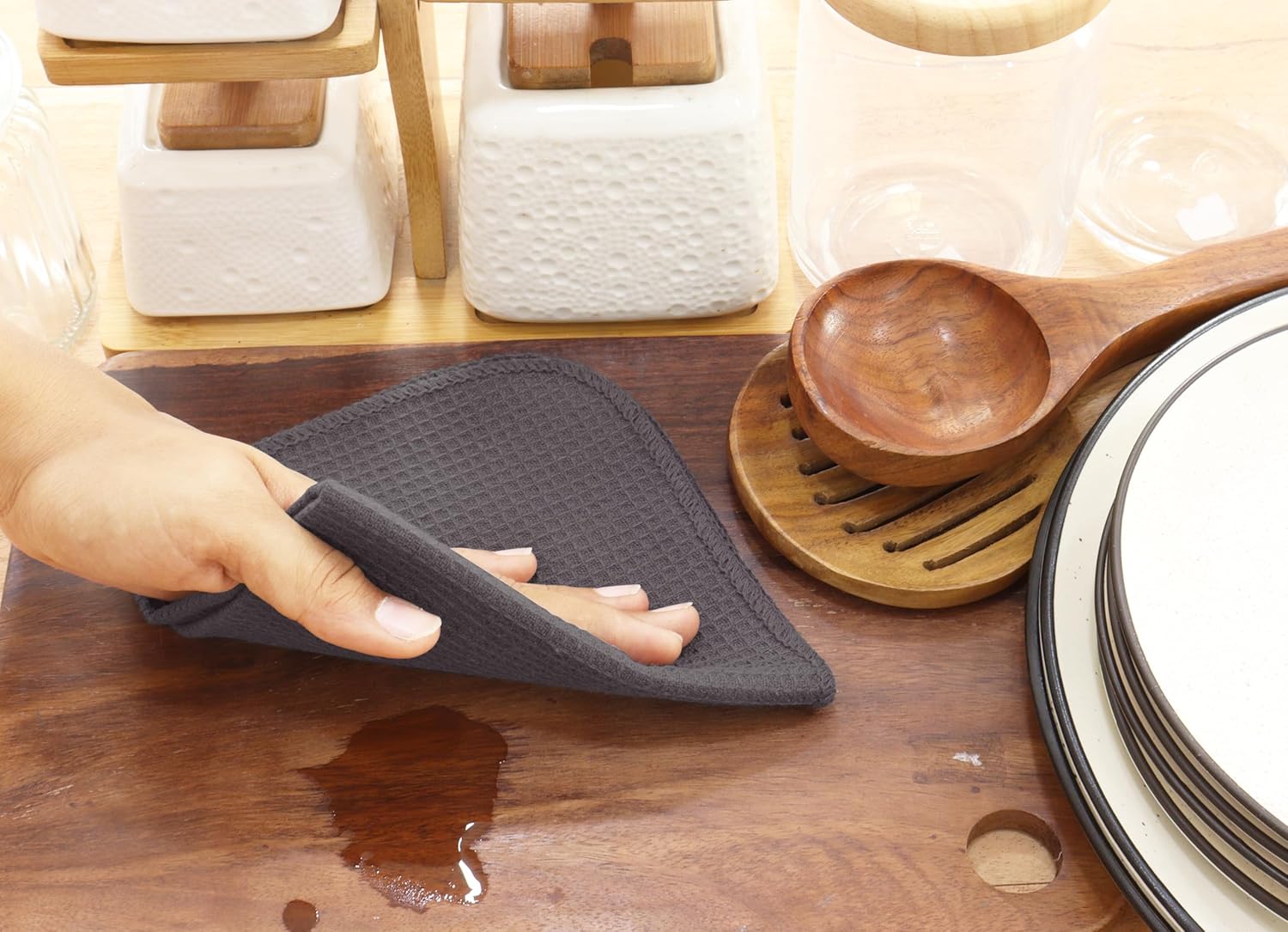 - Experience superior absorbency with our dish rags, featuring a honeycomb check design adorned with a buffalo pattern. They excel in moisture absorption and complement various kitchen aesthetics.