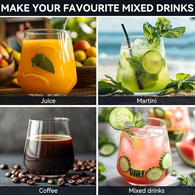 - Versatile Accessory for Every Occasion More than just wine glasses, these stemless tumblers are versatile enough for a variety of beverages – from cocktails and sparkling water to juices and soft drinks. Perfect for dinner parties, celebrations, or everyday use, they easily adapt to any occasion.