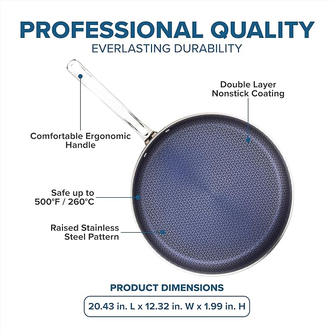 - NONSTICK FRY PAN: Elevate your home kitchen experience with our Viking Non Stick Frying Pan! Ideal for both novice chefs and seasoned chefs, this frypan is crafted with a sleek durable stainless steel construction with a raised stainless steel grid pattern for improved searing, and features nonstick coating for exceptional food release and easy clean up; whether cooking an omelette or frying meats and vegetables, our fry pan is the perfect accessory for creating your next culinary masterpiece
