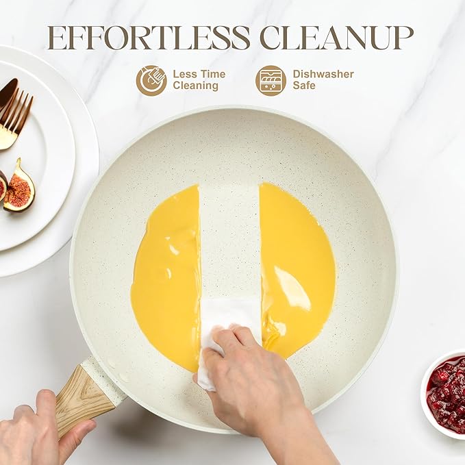 - Healthy Nonstick Coating - The granite non stick wok coating is free from toxic substances, ensuring health cooking, making cleaning effortless.
