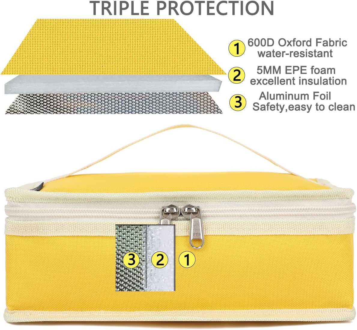 - ✿ Material:The FlowFly reusable Lunch Bag is made of the highly durable 600D Polyester,food grade aluminum foil inside, padded with extra thick 5mm PE foam and sturdy zippers.