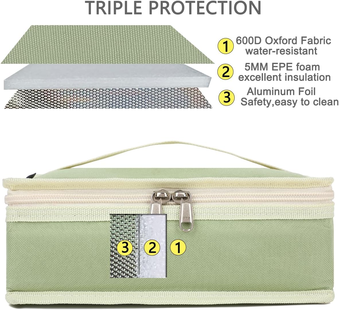 - ✿ Portable:Handle and could easy put into backpack or large handbag.Soft grip handles of Lunchbox is designed for convenient carrying, inner mesh pocket can separately stores ice pack and tableware. Easy to clean and dry, just wipe it with a wet cloth.