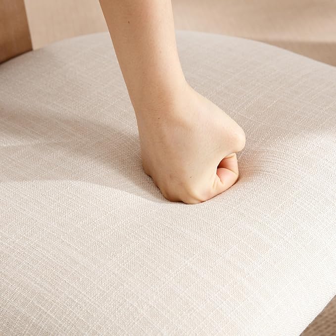chairus Dining Chairs Set of 6 Linen Fabric Diner Chairs Farmhouse Wood Chairs for Kitchen and Dining Room, Beige