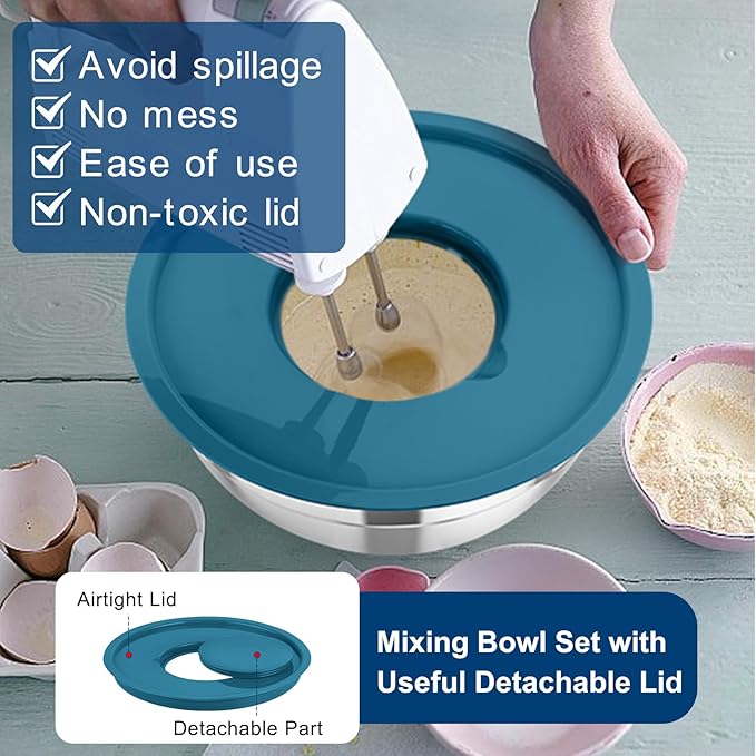 - Food Grade & Long-Last - TeamFar mixing bowls set is made of pure stainless steel, food grade plastic lids and silicone bottom, No any toxic substance leaching into your food and healthy for daily use, Sturdy construction and better rust protection for longer serving time, Won’t smash to pieces and superior to glass or ceramic bowls, Better choice for your kitchen