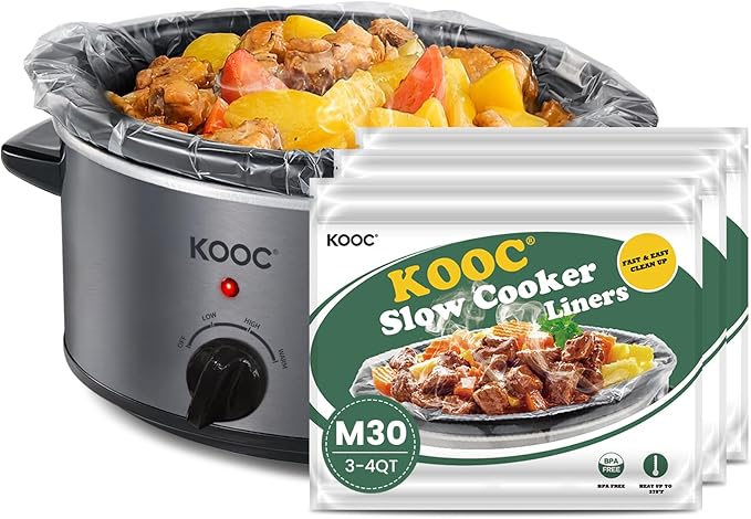 KOOC Slow Cooker Liners 11"x17" 30 count Middle Size Disposable Pot Liners Cooking Bags Fit 3 qt to 4 qt Pot BPA Free Fresh Locking Seal Design