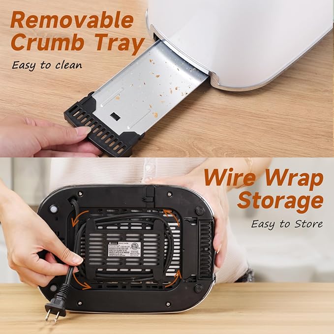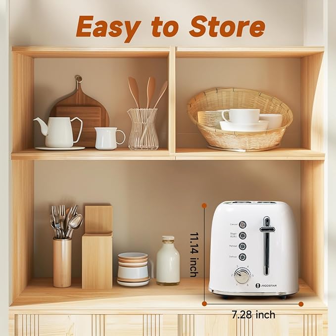- Safe to Use: Heat insulation design around the toaster’s body to prevent it from scalding hands for safety use; High lift design provides more protection to avoid burnt risk when removing bread. Handy and tiny cord storage under the bottom