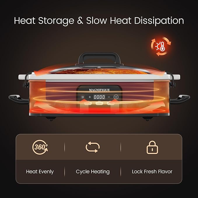 - MULTIPLE HEAT SETTINGS – Programmable controls with cook time ranging from 30 minutes to 20 hours. this versatile casserole dish has got you covered.