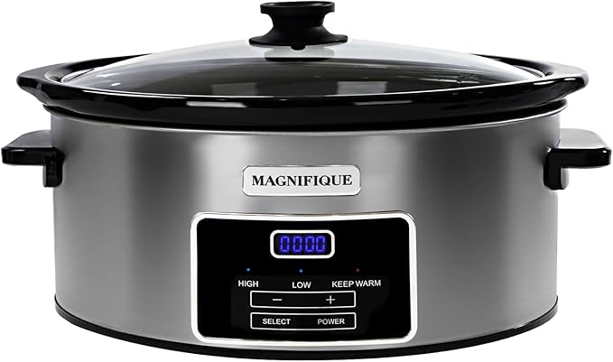 8-Quart Digital Programmable Slow Cooker with Timer - Small Kitchen Appliance for Family Dinners - Serves 10+ People - Heat Settings: Keep Warm, Low and High