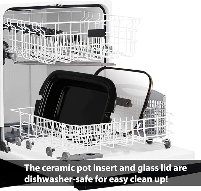 - DISHWASHER-SAFE POT INSERT & GLASS LID – Easy to clean and durable enamel resists dulling, staining, chipping and cracking.