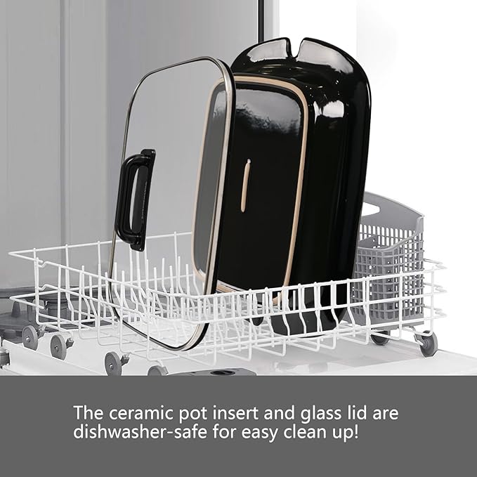 - DISHWASHER-SAFE POT INSERT & GLASS LID – Easy to clean and durable enamel resists dulling, staining, chipping and cracking.