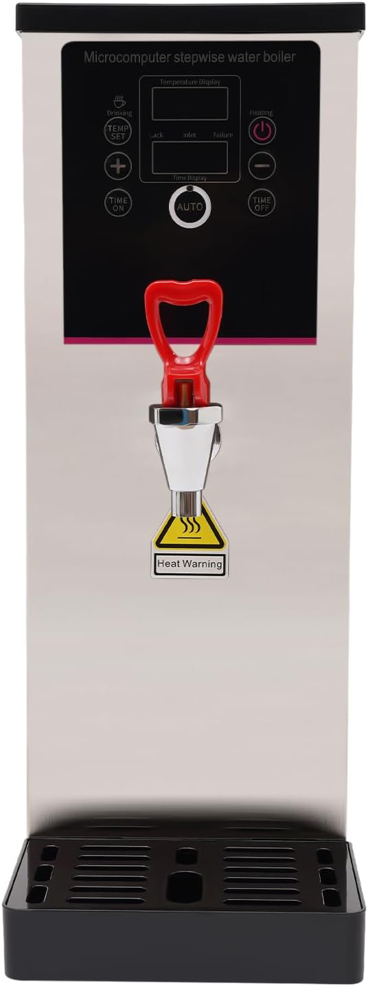 - 【Easy to Use & Good Material】: The smart digital display screen shows you the temperature in real-time and lets you see all the functions at a glance. The sensitive keys allow you to adjust easily. You can also set on and off times for your convenience. This commercial water boiling machine and dispenser mainly uses 304 stainless steel for the material, with high hardness, good performance of corrosion and rust resistance, making you drink it with peace of mind.